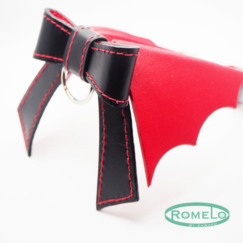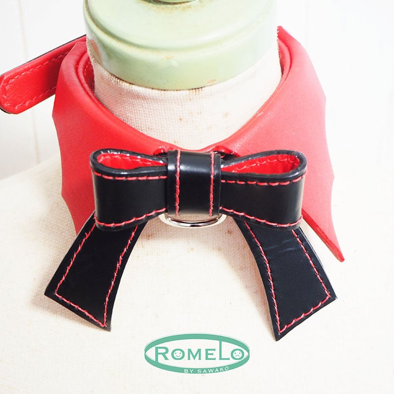 蝙蝠襟に赤いリボンのチョーカーです。